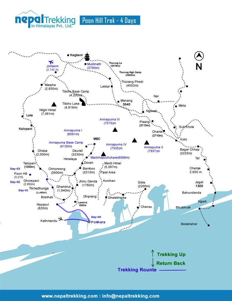 Ghorepani –  Poon Hill – Hot Spring Treks is comparatively an easy walk that begins Nayapool which about one hour drive from Pokhara. Ghorepani Poon Hill trek of 8 days is very famous trekking route for mountain holidays and cultural experience. This trekking package is complete trek from arrival to return of Nepal. Poon Hill trekking starts after the one hour drive from Pokhara. It passes through the famous trekking villages of Tikhedhunga, Ghorepani, Poon Hill, Tadapani, Hot Spring (Tatopani) and Birethati.